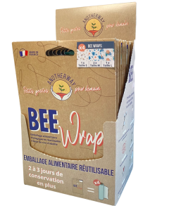 Anotherway — Présentoir d’emballages alimentaires vegan à la cire de riz – 12 packs de 4 (S2ML)