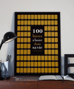 Une affiche unique qui liste 100 bières incontournables. Une fois que vous avez dégusté la bière mentionnée, vous grattez la case et passez à la suivante.