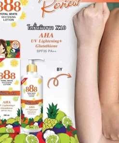 Disponible Chez Alghandour Market à Casablanca – Découvrez le 888 Total White Whitening Lotion 250 ml, un lait corporel éclaircissant et hydratant, formulé pour illuminer le teint, unifier la peau et lui offrir une douceur soyeuse au quotidien.