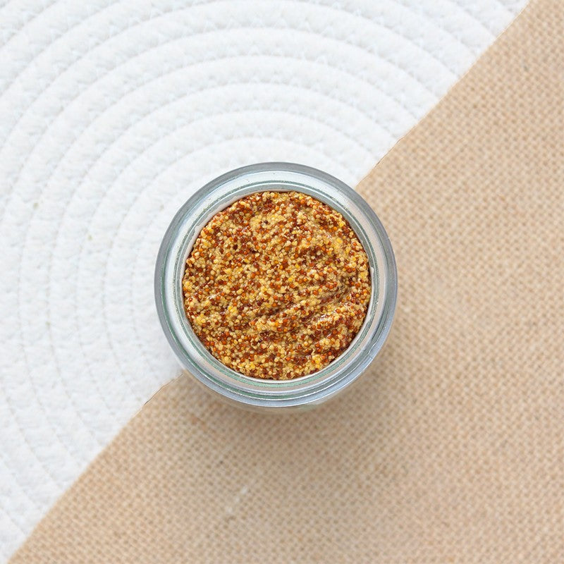 Notre moutarde à l’ancienne au vinaigre de cidre est à la fois rustique et douce !