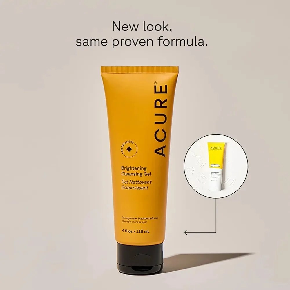ACURE Brightening Gel Nettoyant Éclaircissant, nettoyant visage naturel, gel nettoyant éclat, soin visage anti-pollution, gel nettoyant purifiant ACURE, cosmétique vegan, nettoyant peau mixte, routine visage lumineuse, produit beauté éclaircissant Casablanca, Alghandour Market.