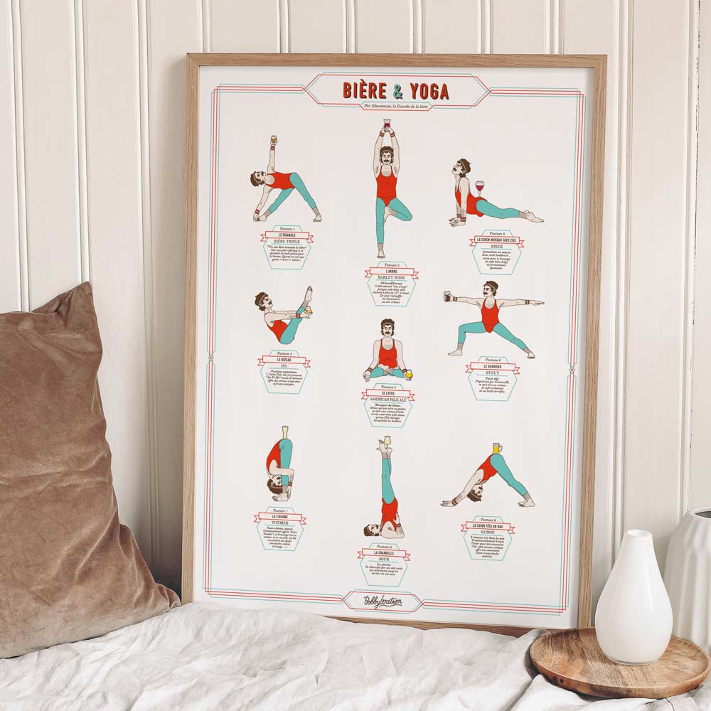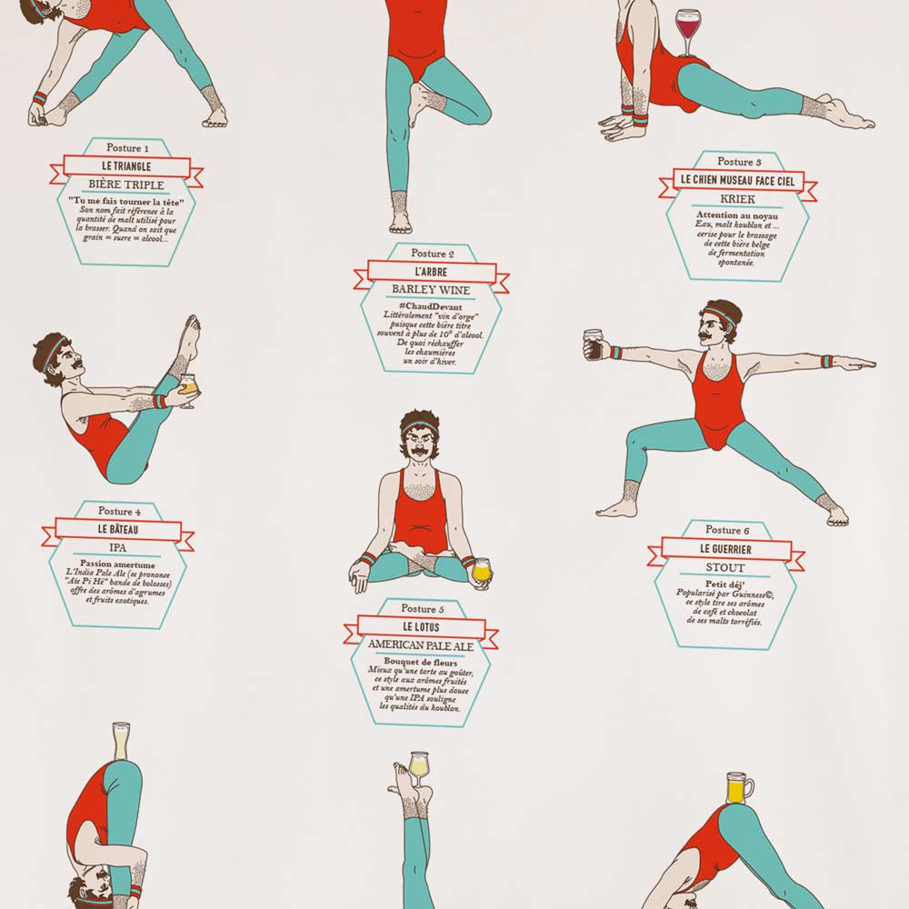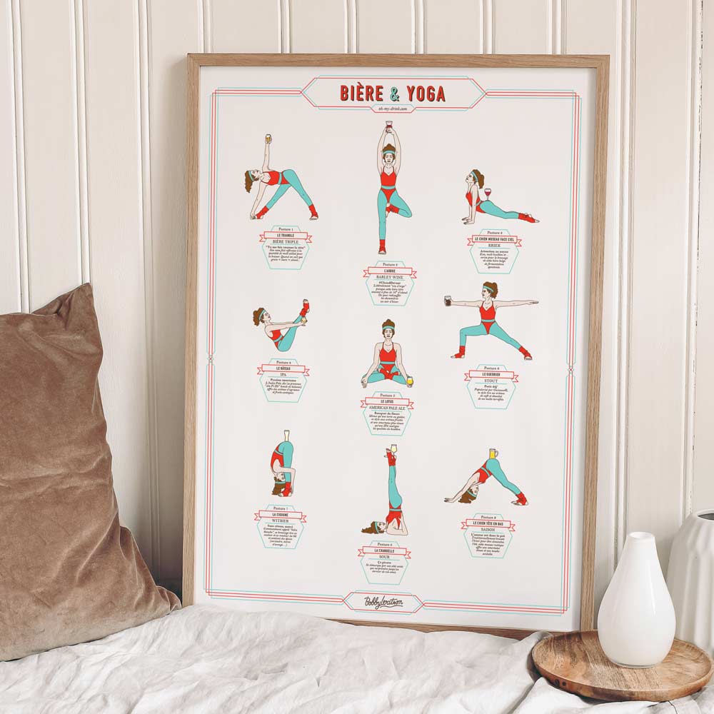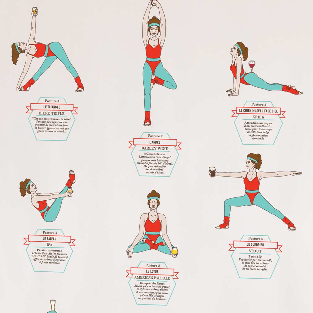 Issue d’une collaboration avec l’illustratrice Bobby Watson, cette affiche vous propose une sélection de postures de Yoga ainsi que la bière conseillée pour l’accompagner.