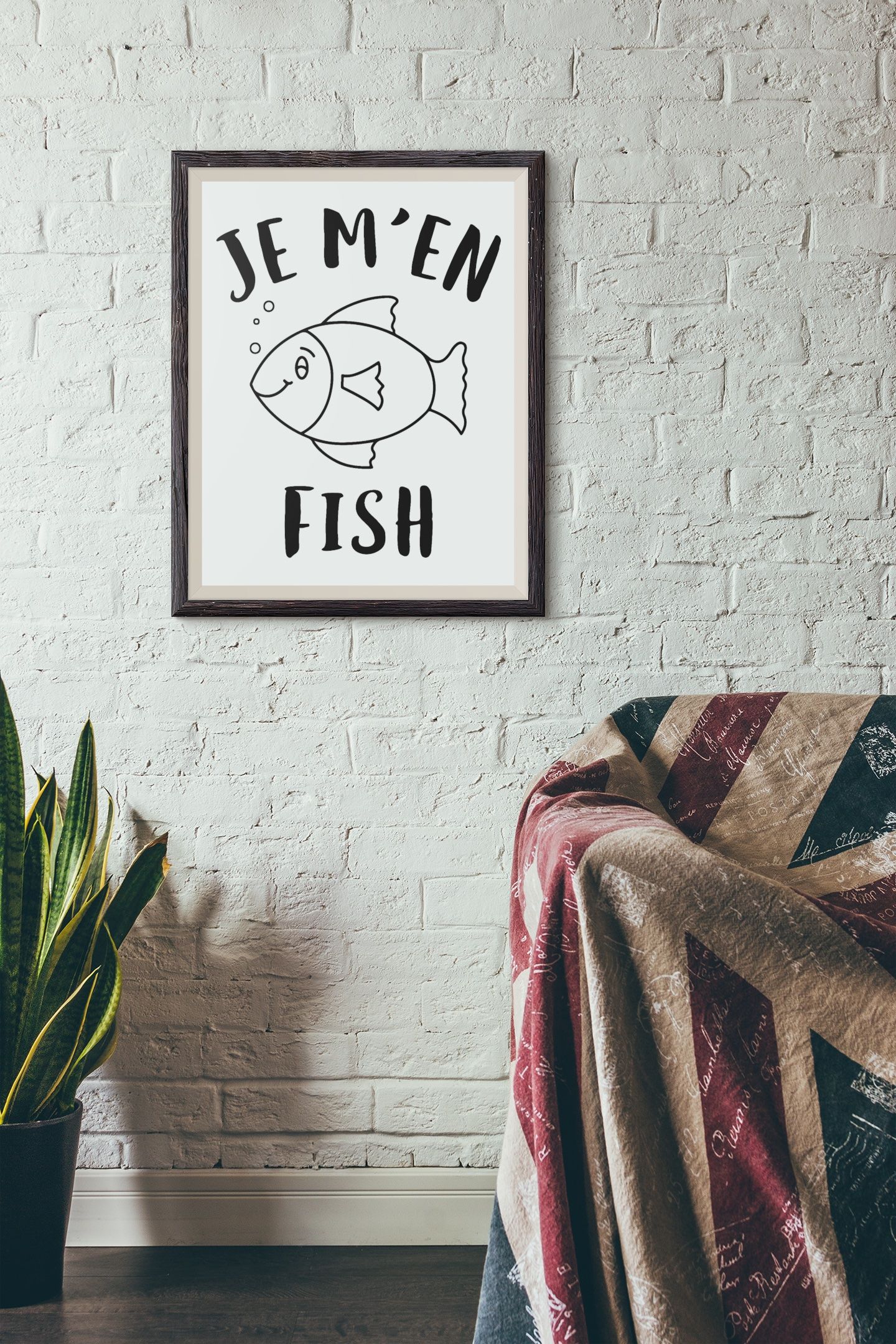 Envie d’une affiche originale pour ajouter du style à votre déco ? L’affiche « Je m’en fish » est faite pour vous ! Son design original met en scène un adorable poisson accompagné d’un jeu de mots plein d’esprit. Parfait pour les amateurs de pêche et les adeptes des jeux de mots décalés. Accrochez cette affiche unique chez vous et laissez votre personnalité s’exprimer. Faites passer le message avec style 🙂