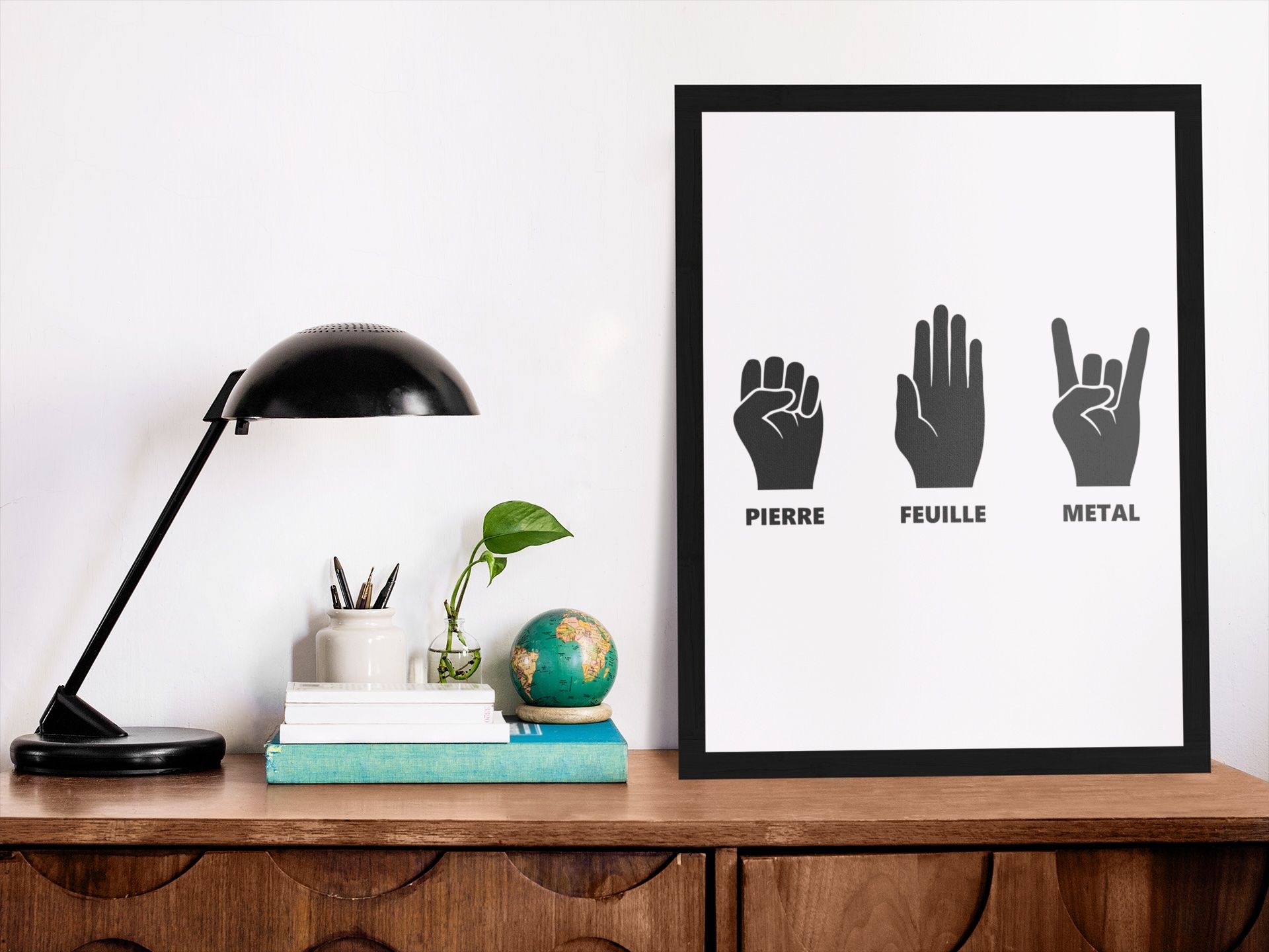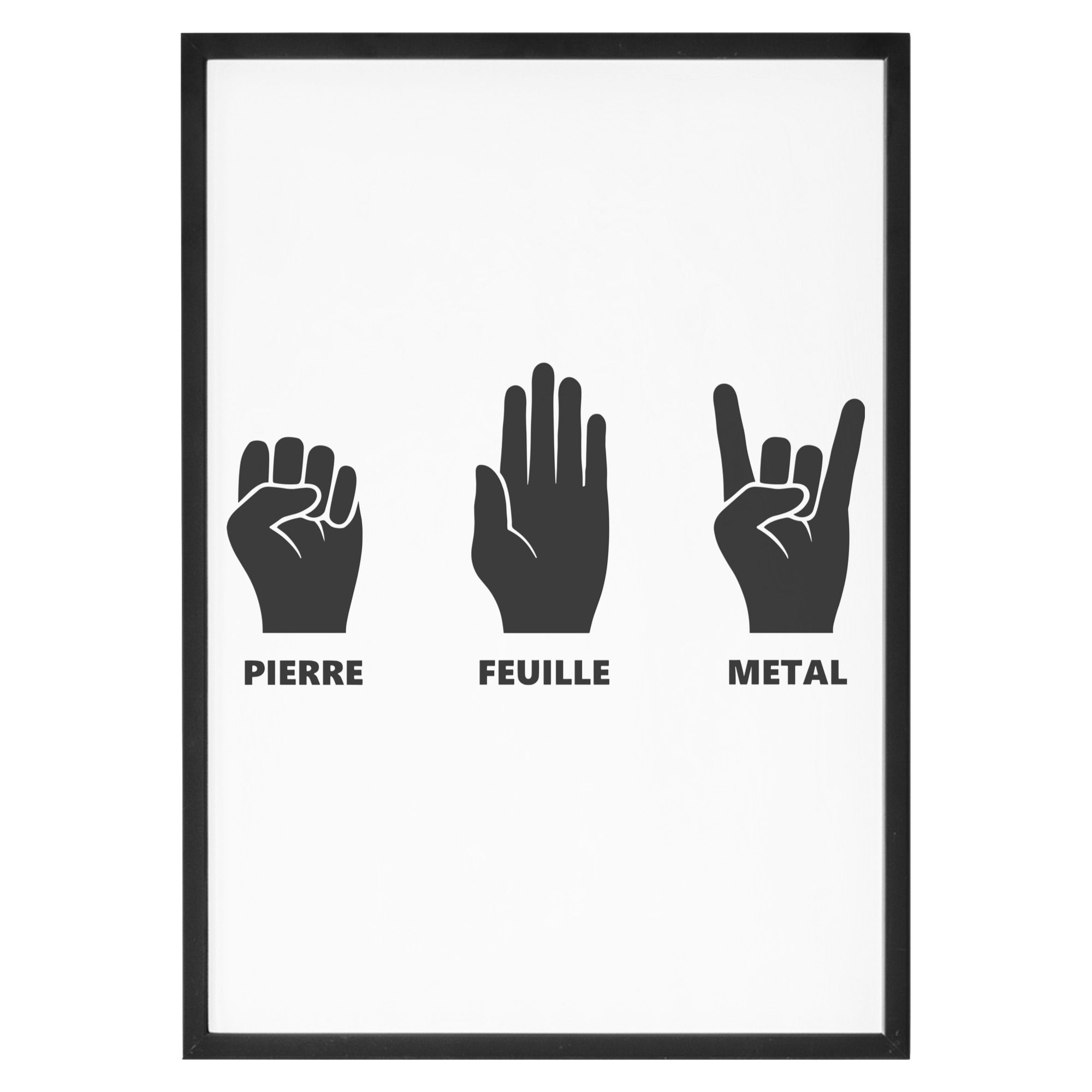 Ajoutez une touche ludique à vos murs avec cette affiche « Pierre Feuille Metal » ! Parfaite pour les fans de rock et d’humour, ce design hilarant revisite le célèbre jeu « Pierre-Papier-Ciseaux » avec une pointe de métal. Un cadeau original et rigolo pour les amateurs de musique et les esprits créatifs. Affichez votre passion avec style et amusez-vous à deviner qui gagnera !