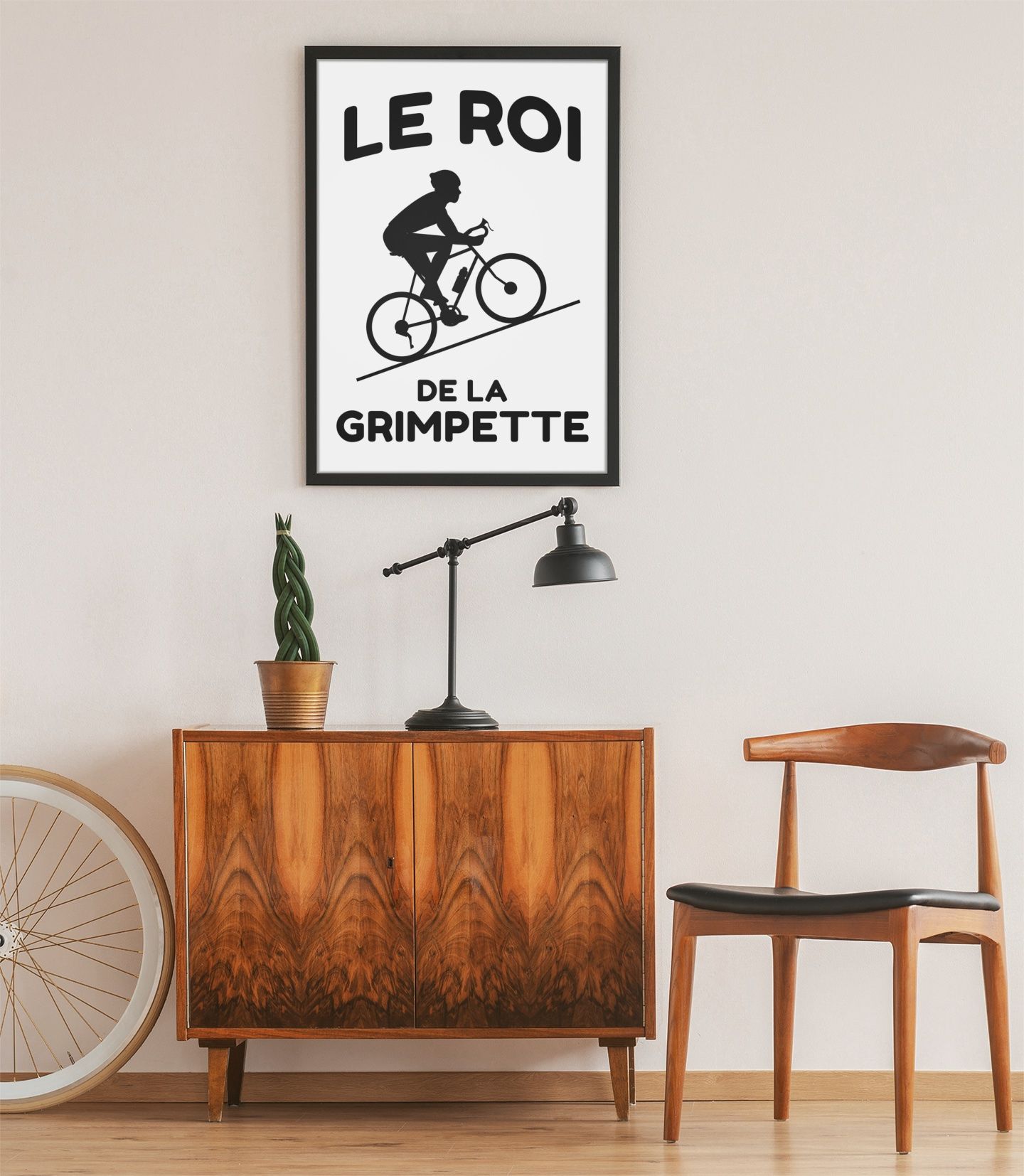 Vous êtes à la recherche d’un moyen de montrer à tous que vous êtes le roi de la grimpette? Alors cette affiche est faite pour vous! Avec son design unique, elle est parfaite pour décorer votre salon, votre bureau ou même votre garage. Pour offrir à un cycliste ou pour vous faire plaisir, cette affiche sera un très bon choix. Bonne humeur garantie 🙂