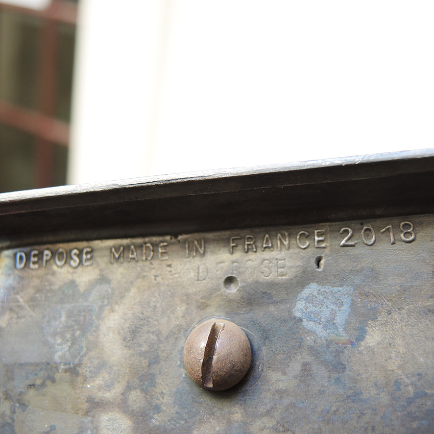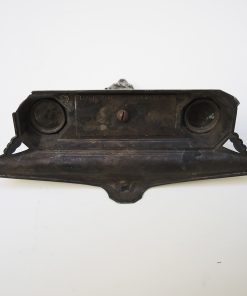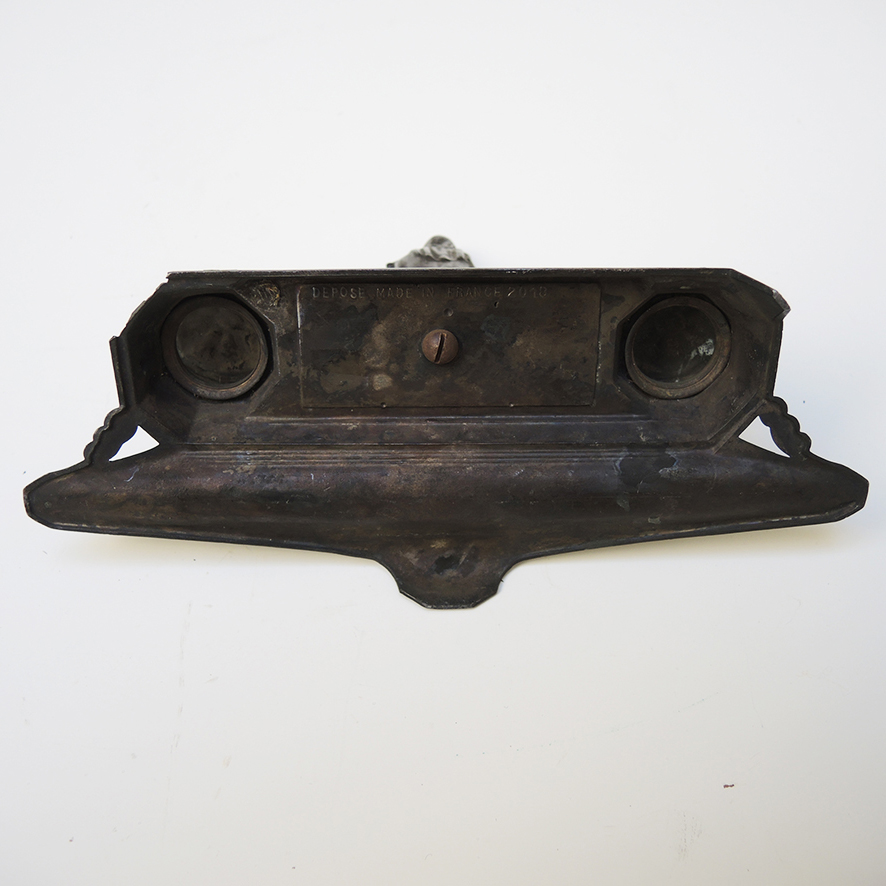 Sublime double encrier vintage en métal orné d’un motif géométrique typique du style Art Déco