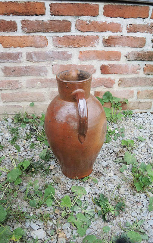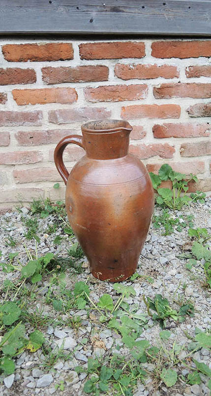 Cruche / broc / carafe vintage en grès vernissé marron de taille XL