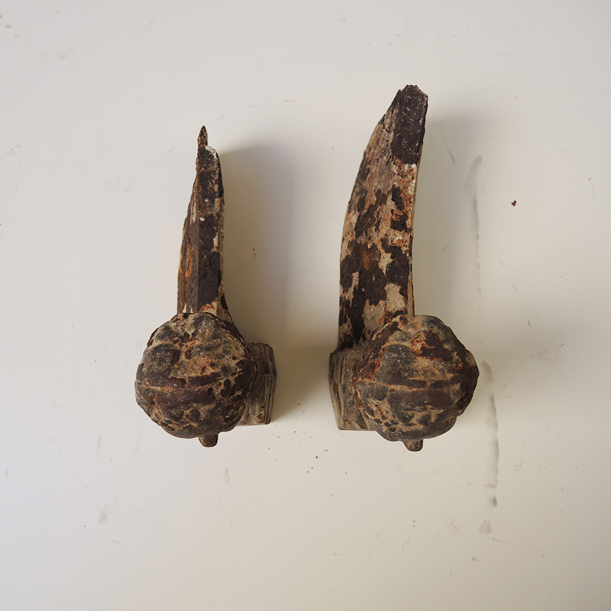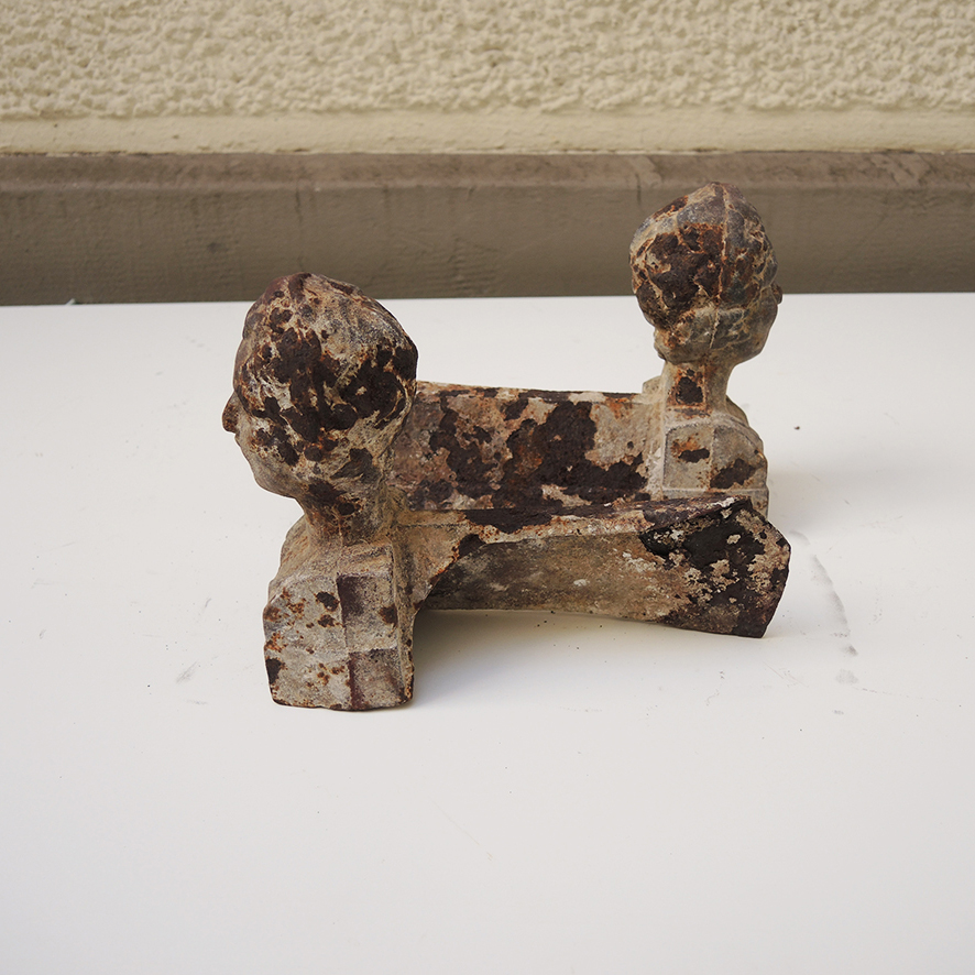 Chenets de cheminée vintage en fonte, décorés d’un buste de d’empereur romain