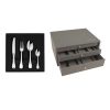 Les couverts AQUATIC de DEGRENNE créés par le designer Liisa Haataja, sont l’expression de l’équilibre et de la pureté du design finlandais. Les lignes sont douces et harmonieuses, l’ergonomie parfaite. Réalisés en acier inoxydable 18-10, de haute qualité et résistance, ils sont faciles d’entretien. Le colis-écrin 100 pièces est constituée de 12 fourchettes de table, 12 cuillères de table, 12 couteaux de table, 12 cuillères à café, 12 fourchettes à gâteaux, 12 fourchettes à dessert, 12 couteaux à dessert, 12 cuillères à dessert, 1 cuillère de service, 1 fourchette de service, 1 pelle a tarte et 1 louche dans un coffre de rangement 3 tiroirs.