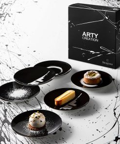 Les chefs repoussent les limites de la créativité afin de nous transmettre de grandes émotions culinaires, tant par la préparation des plats que dans leur dressage. Il est désormais possible de reproduire l’expérience à la maison ! La collection ARTY CREATION rend hommage à la gestuelle de ces chefs. Les dessins nous invitent à compléter l’œuvre et laissent la touche finale à nos mains créatrices. Le plat est dressé comme au restaurant et les mets sont sublimés. ARTY CREATION stimule l’imagination grâce à 4 designs en blanc et noir pour jouer le total look ou le contraste. Révélez l’artiste qui sommeille en chacun !