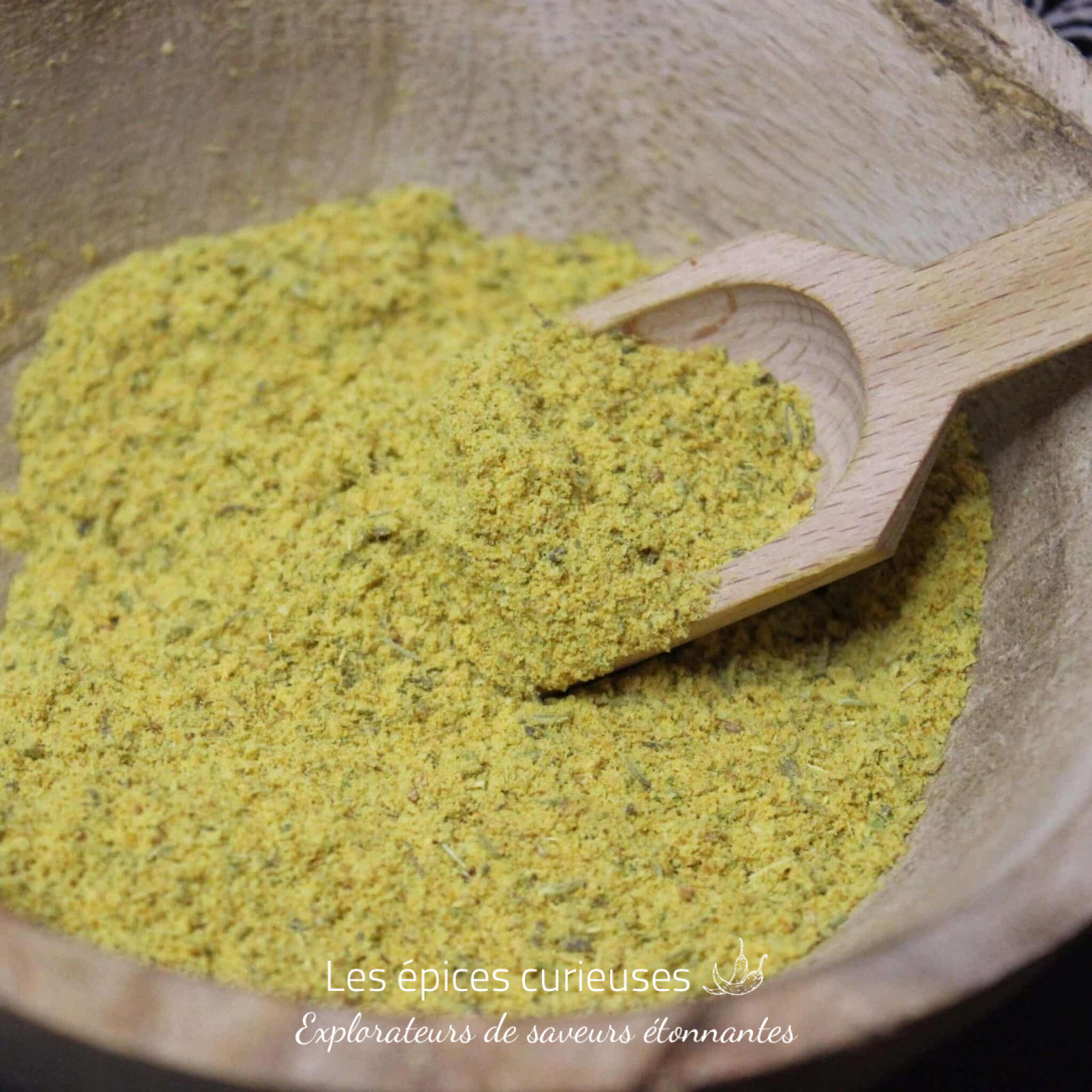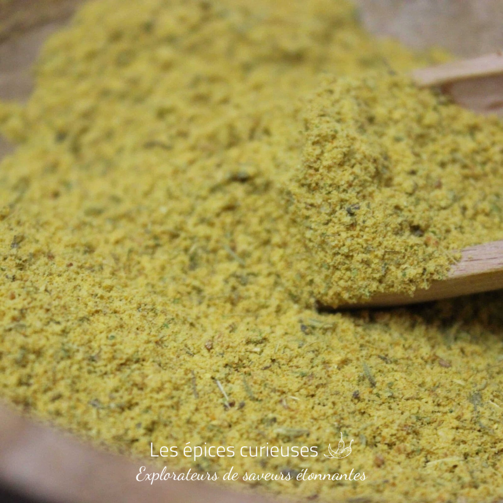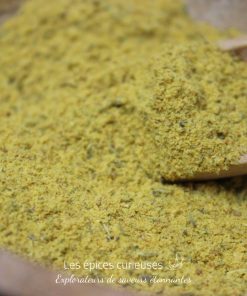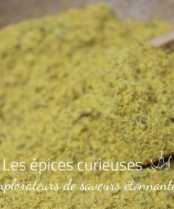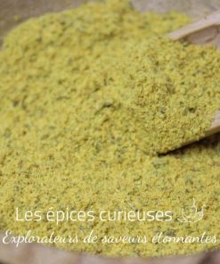 La texture du mélange est agréablement granuleuse, prête à se fondre parfaitement dans vos préparations culinaires. Sa couleur dorée, à la fois chaleureuse et appétissante, provient du curcuma bio soigneusement intégré à l’assemblage.