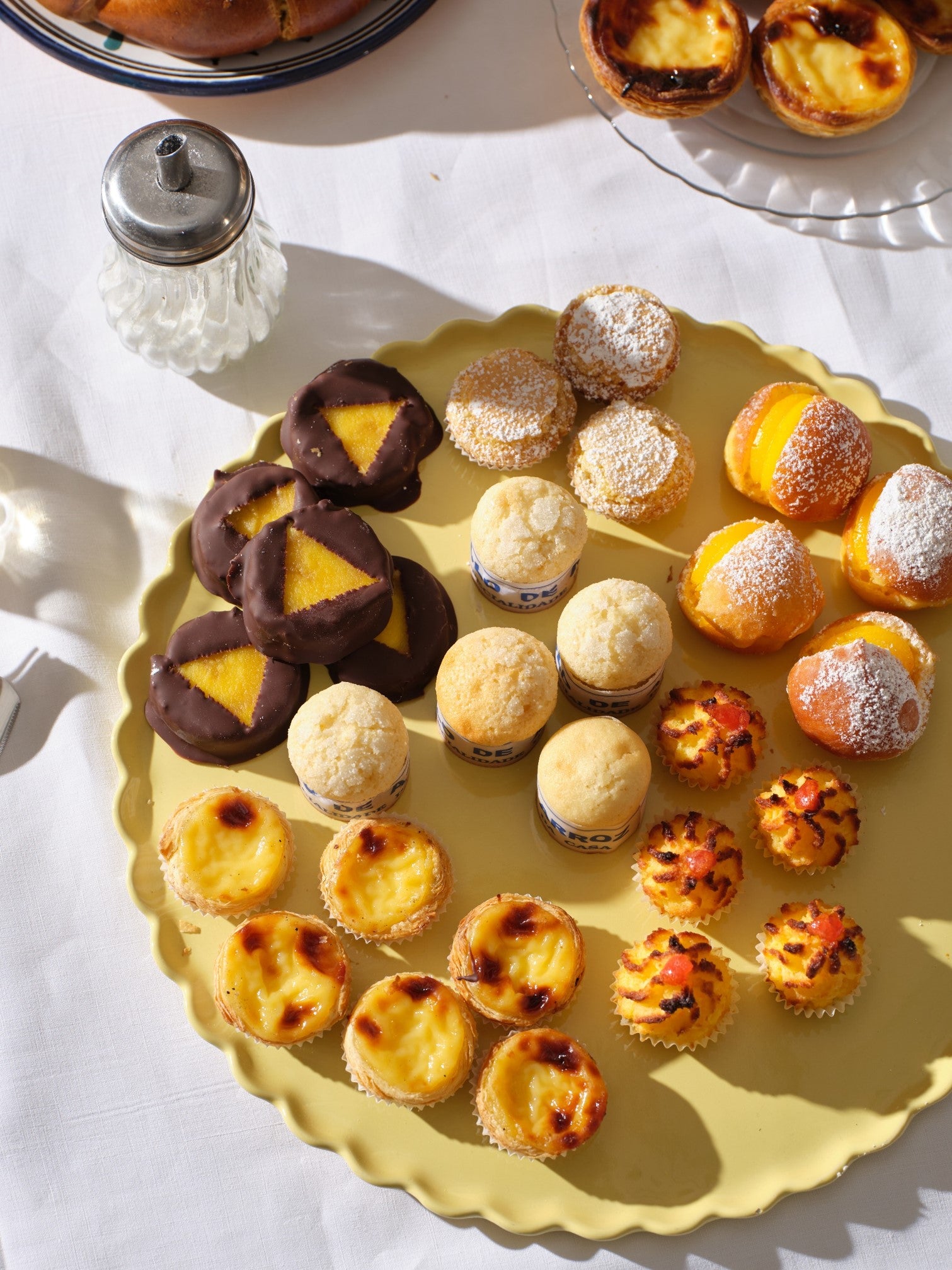 Un assortiment complémentaire de 24 miniatures sucrées avec en version mini : 6 pastéis de nata au chocolat, 6 bolo de arroz, 6 pastéis de coco et 6 mexicanos