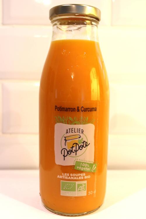 Avec son format « nomade », la soupe Potimarron et Curcuma de l’Atelier PotPote est pratique à emporter, pour des repas sur le pouce équilibrés.