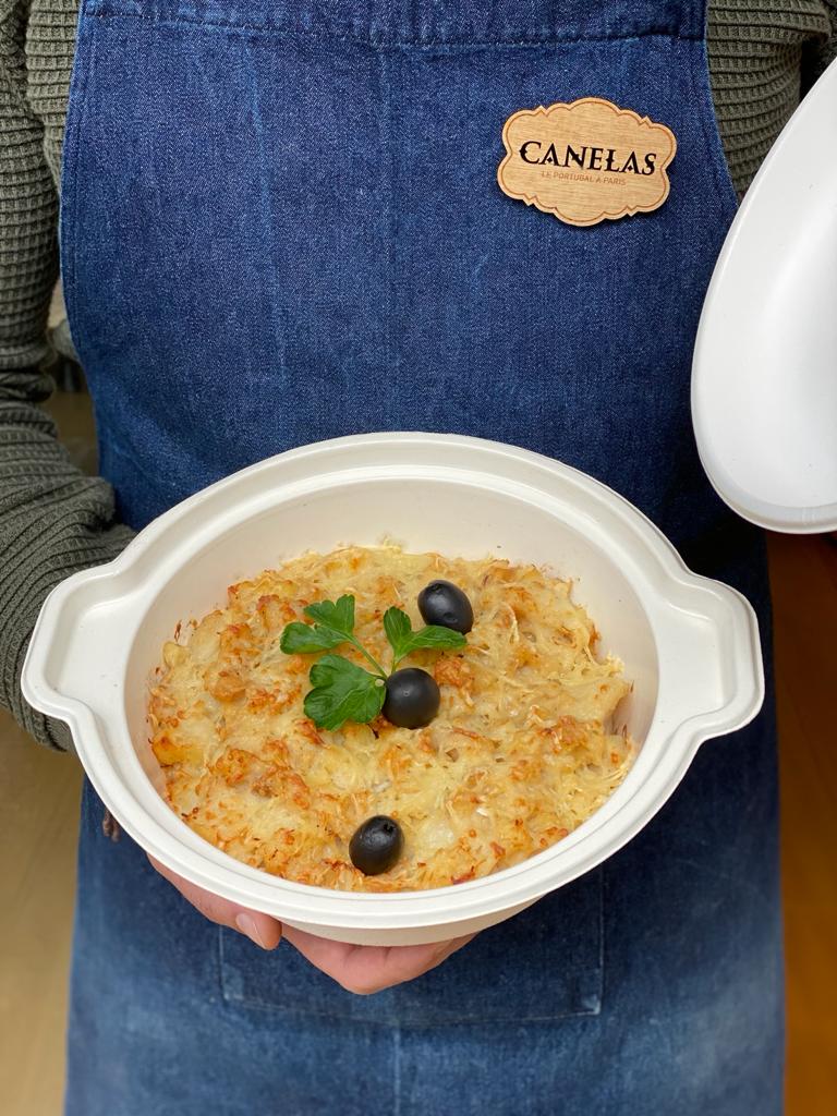 Ce plat est composé de morue effilée, pommes de terre frites en cubes, oignons, crème fraîche, sauce béchamel et fromage gratiné. Une recette classique de la cuisine portugaise crémeuse et bien savoureuse.