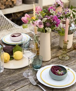 La collection de vaisselle BAHIA Degrenne, en grès teinté masse, fait la part belle à ce beau matériau dans une sélection de couleurs douces inspirées de la nature. Le choix de ce matériau teinté dans la masse, permet une belle intensité de couleur et une résistance de celle-ci dans le temps. Les pièces de la collection sont caractérisées par un jeu d’émail qui permet d’alterner effets de matité et de brillance. La collection BAHIA est disponible dans un choix quasi complet de pièces pour votre cuisine.