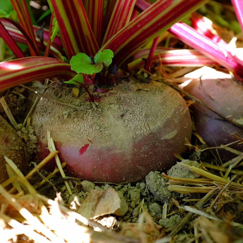 Cette variété possède des racines arrondies et aplaties. La chair est d’un beau rouge foncé. Cette ancienne variété est très précoce et sucrée.