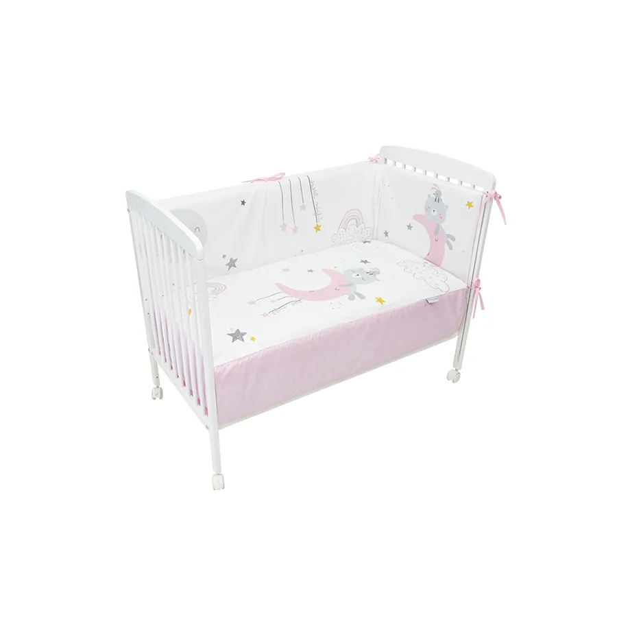 La couette et tour de lit sont réalisés en tissu 100% coton. Le set a un look si doux pour apporter beaucoup de délicatesse dans la chambre de votre bébé.