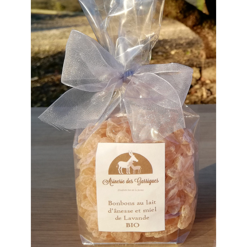 Ingrédients : Sucre, sirop de glucose, lait d’ânesse BIO (20%), miel de lavande BIO (15%).