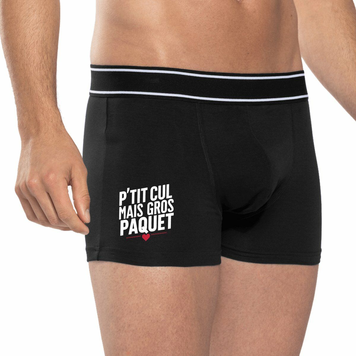 Vous voulez mettre un petit grain de folie dans vos dessous ? Ce boxer « P’tit cul mais gros paquet » est fait pour vous ! Avec son message plein d’humour, il est parfait pour surprendre et amuser. Idée cadeau idéale ou clin d’œil original, ce boxer saura faire mouche à coup sûr. Apportez une touche de fun à votre quotidien tout en restant chic et confortable. Offrez-vous ou offrez-le, effet garanti !