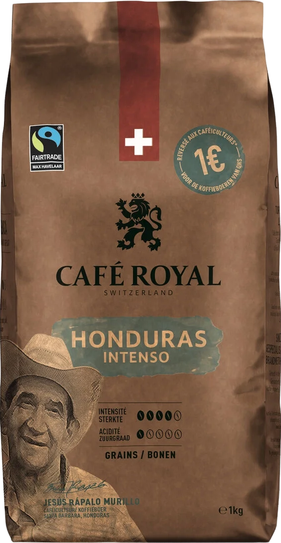 Découvrez le Café Royal Honduras Intenso en grains, un café de qualité supérieure qui séduit par son intensité et ses arômes riches. Torréfiés avec soin, ces grains 100 % arabica originaires du Honduras révèlent des notes subtiles de chocolat et de noix. Idéal pour les amateurs d’espresso ou de café allongé, il garantit une expérience aromatique unique à chaque tasse. Offrez-vous 1 kg de plaisir authentique pour démarrer vos journées avec énergie et raffinement.