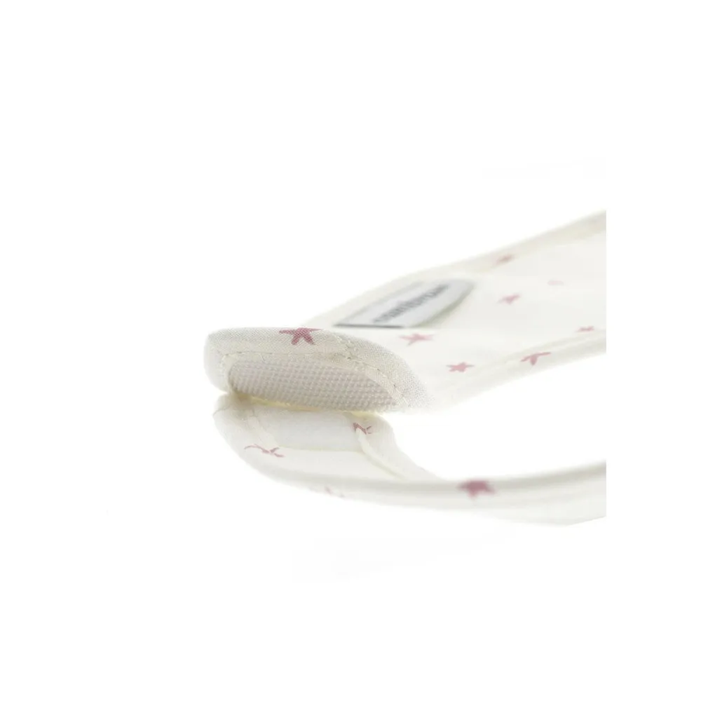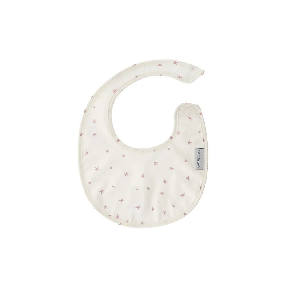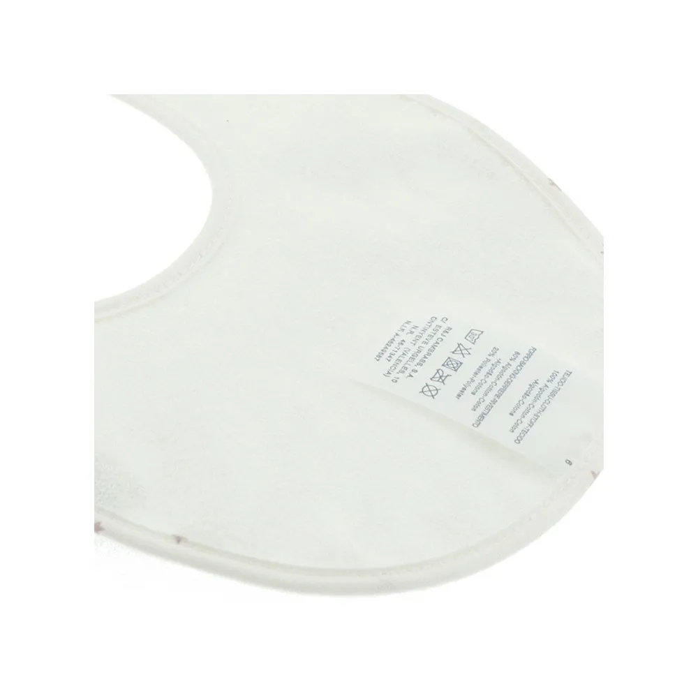 Des bavoirs ronds et carrés avec CAMBRASS velcro empêchent le bébé de se salir ou de se mouiller. La partie qui est en contact avec le bébé est faite de coton 100% égyptien offrant ainsi une finition douce très agréable. La partie interne du tissu, qui n’est pas en contact avec le bébé, a une finition en plastique résistante au lavage qui empêche le transfert de tout liquide.