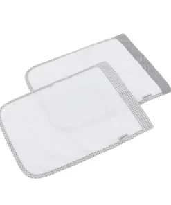 Fibres botaniques, absorbantes, douces et fraîches. avec une bordure de couleur. Sa dimension est de 25x35cm. Elles permettent d’être utilisées à la maison et en promenade, facilement mises dans le sac de maternité. Spécialement indiquées pour sécher les baves du bébé, pour protéger le vêtement de l’adulte (poser sur l’hombre) ou pour absorber la sueur du bébé (placer sous la tête).