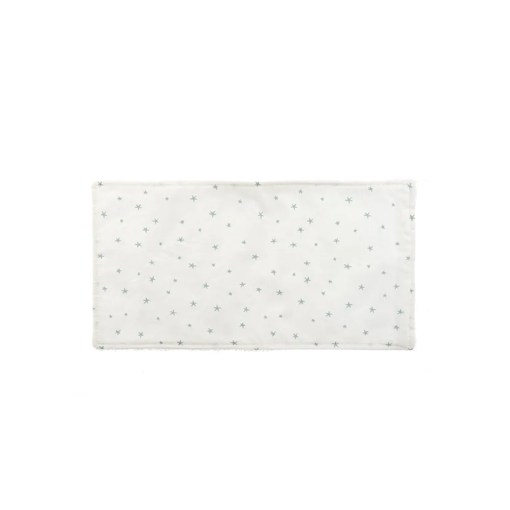 La partie avant avec le textile imprimé est 100% coton, tandis que la partie qui entre en contact direct avec la peau du bébé pour sécher la salive est 70% coton 30% tencel, une fibre douce et absorbante, se caractérisent par leur durabilité et leur résistance à un usage constant et à des lavages fréquents, sans perdre leur pouvoir absorbant ni se détériorer rapidement.