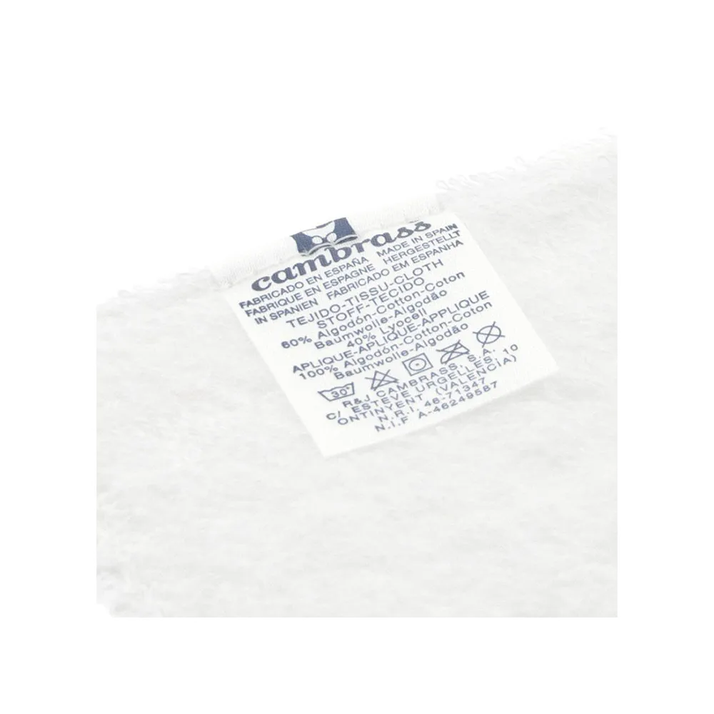 La Bavette de Cambrass en forme rectangulaire aux dimensions de 29,5×15,5×1 cm est un accessoire spécialement conçu pour aider à garder la zone autour de la bouche du bébé sèche et propre pendant les poussées dentaires ou lors de la sortie des premières dents.