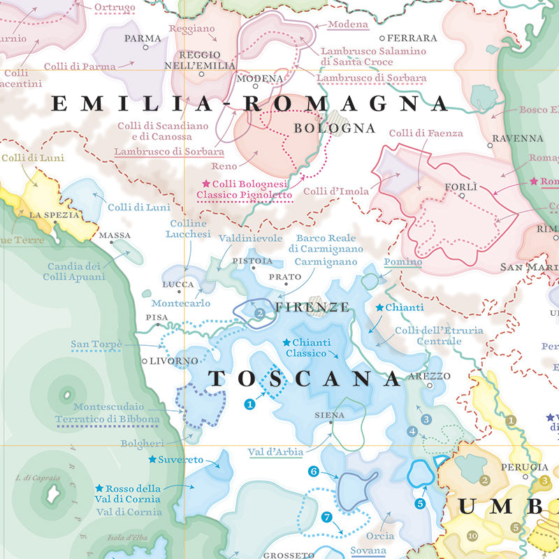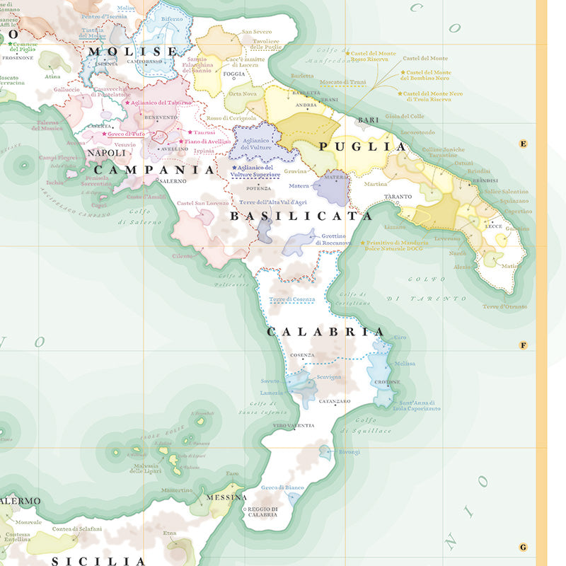 Présentation de toutes les DOC et DOCG du pays. Une idée cadeau originale et déco pour les amateurs de vins italiens. Taille standard, facile à encadrer.