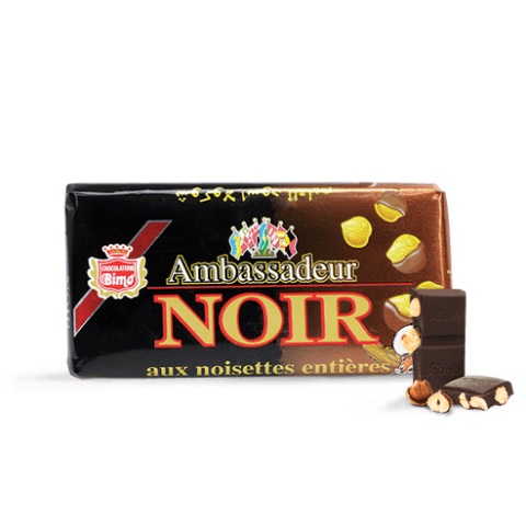 Le Chocolat Ambassadeur Noir aux Noisettes Entières de Bimo est une tablette de 100 g alliant la richesse du chocolat noir à la croquante des noisettes entières. Produit en Algérie, ce chocolat est idéal pour une pause gourmande ou un encas sucré. Commandez en ligne et profitez d’une livraison rapide à domicile partout en Algérie via eChrily Courses.