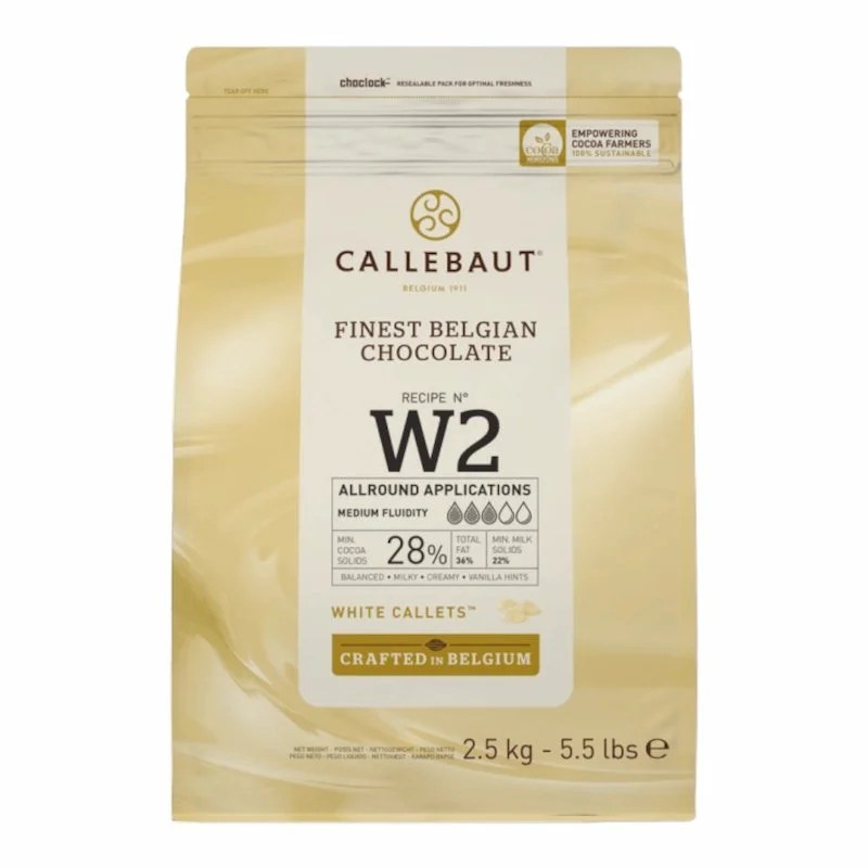 Faites de chaque création une réussite avec le Chocolat de Couverture Blanc 28% N°W2 Callebaut 2.5kg, la référence des chefs pâtissiers et chocolatiers !