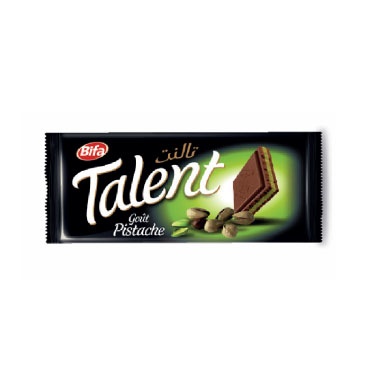 La tablette de chocolat Talent Pistache BIFA 150 g combine le goût intense du chocolat au plaisir croquant des éclats de pistache, pour une expérience gourmande unique. Idéal pour les amateurs de chocolat original et raffiné.