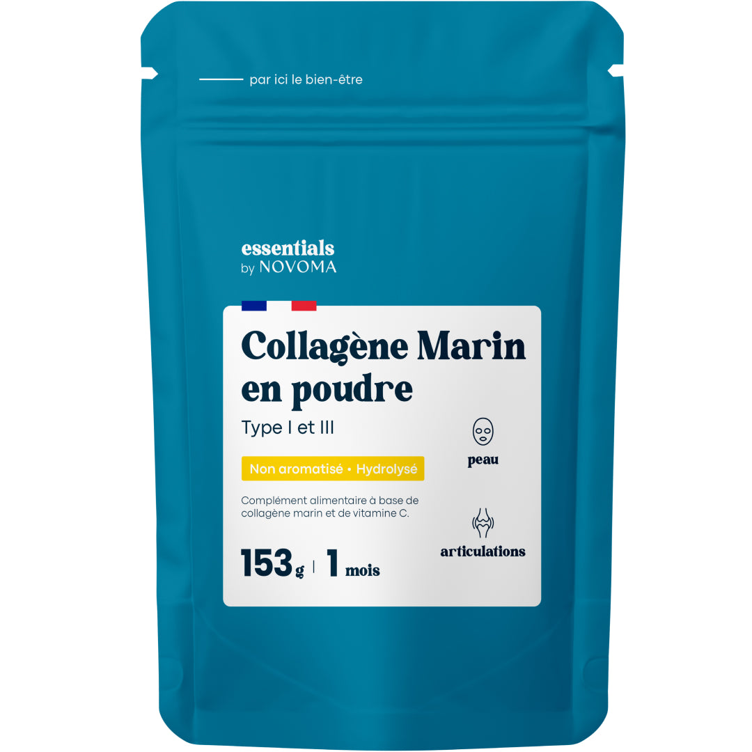Collagène marin en poudre hydrolysé de type I et de bas poids moléculaire (2000 daltons) pour une absorption optimale. Formule enrichie en vitamine C.