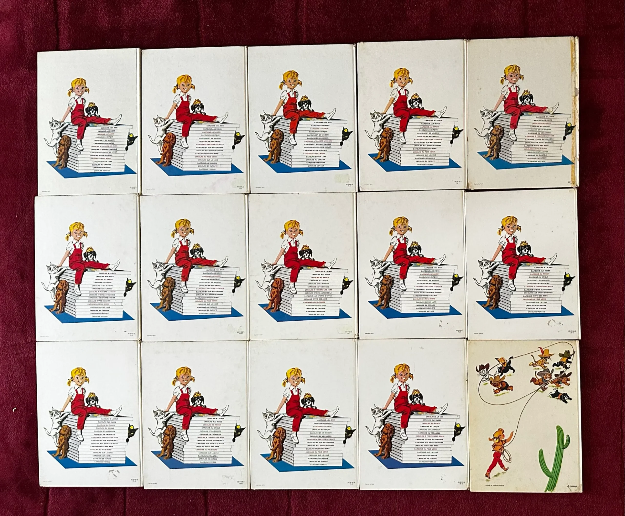 15 volumes ; CAROLINE A LA MER CAROLINE AUX INDES CAROLINE AU RANCH CAROLINE AU CIRQUE CAROLINE ET SA MAISON CAROLINE EN VACANCES CAROLINE A TRAVERS LES AGES CAROLINE ET SON AUTOMOBILE CAROLINE AUX SPORTS D’HIVER CAROLINE INVITE SES AMIS CAROLINE AU POLE NORD CAROLINE SUR LA LUNE CAROLINE AU CANADA CAROLINE EN EUROPE CAROLINE VOYAGE ; CAROLINE AU RANCH est plus ancienne que les autres livres et Caroline et sa maison présente les traces de la réparation sur la tranche, livres propres et solides, avec des petites imperfections, envoi rapide et soigne.