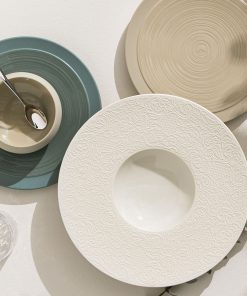 Avec la collection L COUTURE, DEGRENNE provoque une rencontre inédite entre la Haute Porcelaine de Limoges et un motif dentelle, inspiré de la Haute Couture. La Haute Porcelaine de Limoges est une céramique d’exception dont le prestige et la renommée sont devenus universels. L COUTURE se distingue par la précision et la légèreté de ses lignes, témoignage de l’excellence des artisans de la Maison DEGRENNE. La fabrication de chaque pièce de cette collection d’exception nécessite plus d’une semaine de travail artisanal. L’art du beau grâce à l’exécution irréprochable de ce dessin digne des plus grands dentelliers.