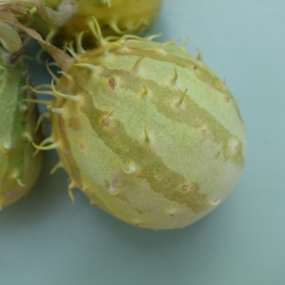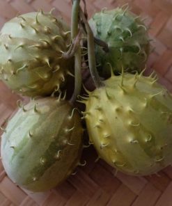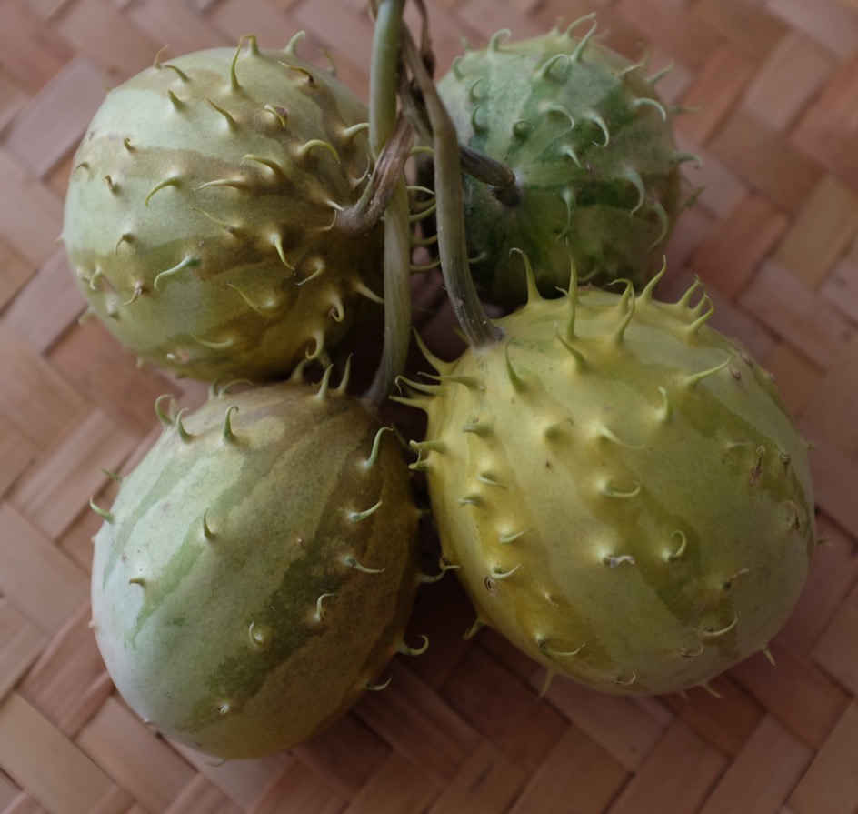 Voici une nouvelle espèce de la famille des Curcubitacées découverte en Zambie. Plante coureuse produisant des fruits vert striés de vert foncé couvert de picots souples . Ils se consomment comme un concombre, la chair est juteuse avec un goût légèrement acidulé.