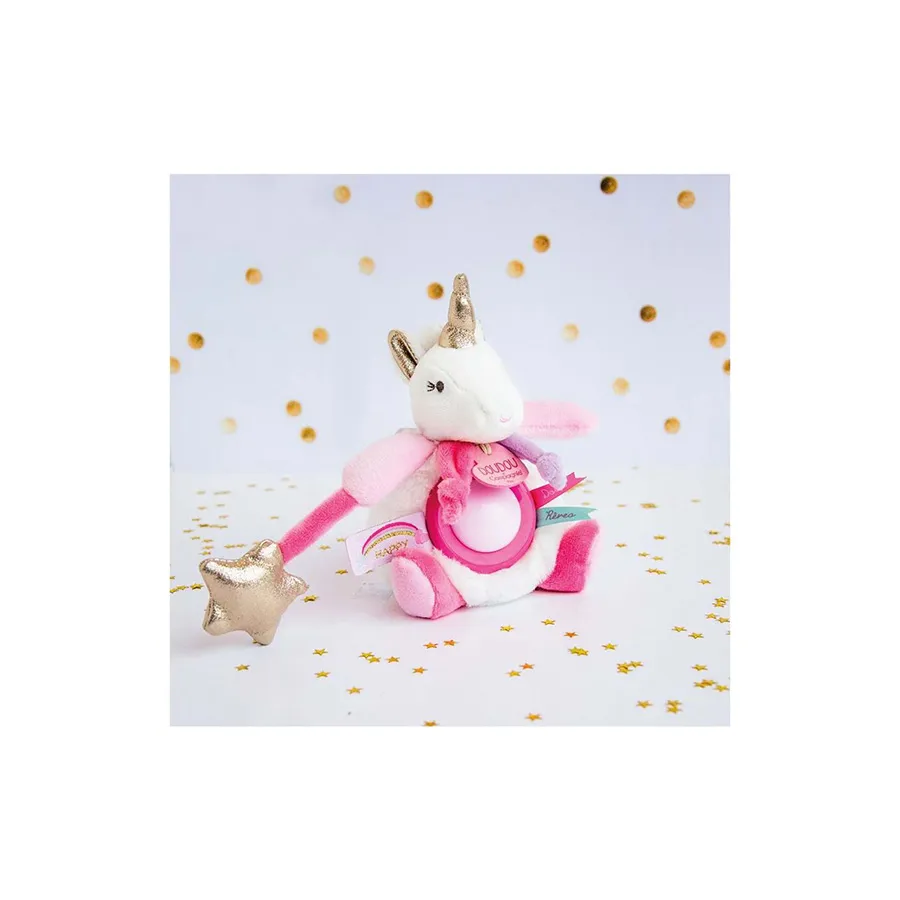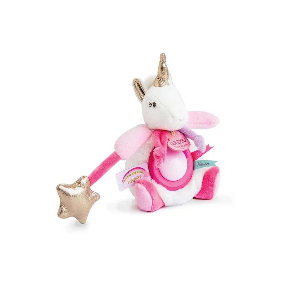 Le cadeau idéal dès la naissance, la veilleuse Lucie la licorne Doudou et compagnie rassurera le bébé et l’accompagnera au pays des rêves. Originale et raffinée, elle est adorable avec ses touches de glitter or et son corps bien moelleux.