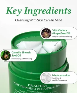 Le Baume Nettoyant Pure Grinding 50ml de Dr. Althea est un soin coréen haut de gamme formulé pour offrir un nettoyage en profondeur tout en douceur. Sa texture baume se transforme en huile au contact de la peau, dissolvant efficacement le maquillage, les impuretés et les résidus de pollution sans irriter ni assécher.