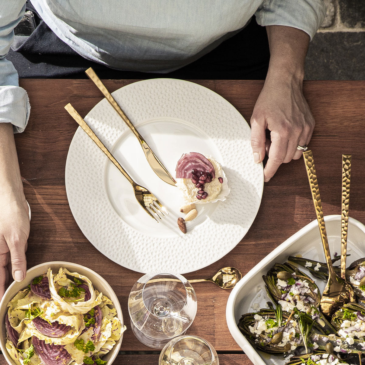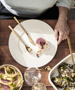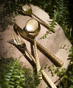 Audace, élégance et tendance, le couvert FUSE se décline dans une teinte délicatement dorée. Le contraste, entre la texture brute et authentique des couverts et leur teinte dorée, sublime le travail de la nature et donne du caractère et de l’originalité à votre table. La finition Laiton est obtenue grâce à une technique complexe, qui apporte un éclat incomparable mais néanmoins délicat qui pourra se patiner dans le temps, donnant toujours plus de caractère à votre table. Il est conseillé d’accorder une attention particulière à ces couverts, et de ne pas utiliser le programme intensif au lave-vaisselle qui soit supérieur à 50°.