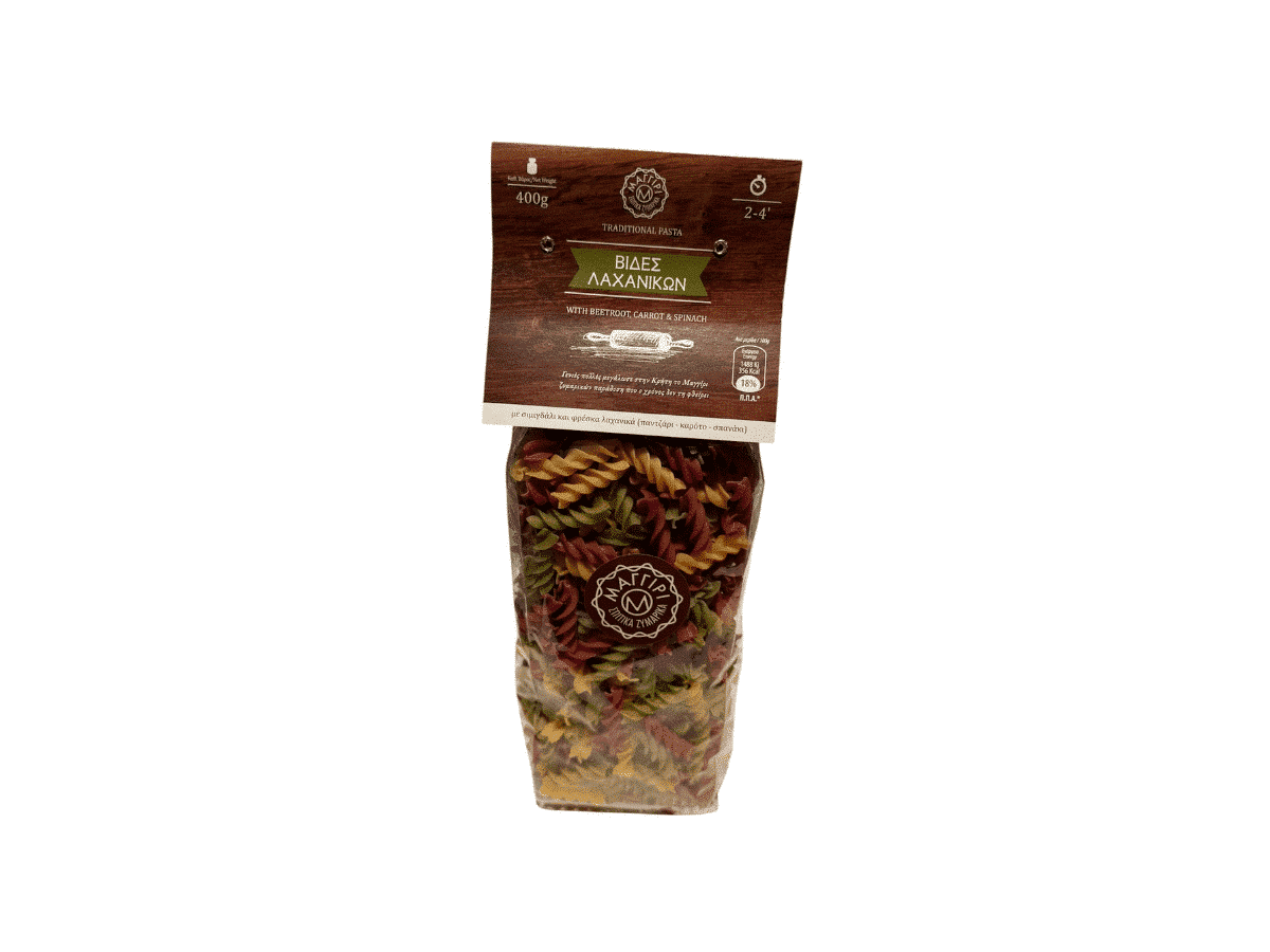 Les fusilli grecs aux légumes associent du blé dur local à de la betterave, de la carotte et de l’épinard frais. Chaque légume apporte une couleur naturelle et une note douce. Aucun additif ni arôme artificiel ne vient altérer les saveurs. Grâce à cette recette courte et maîtrisée, la dégustation reste équilibrée. En plus, la texture se prête aussi bien aux plats chauds qu’aux salades froides.