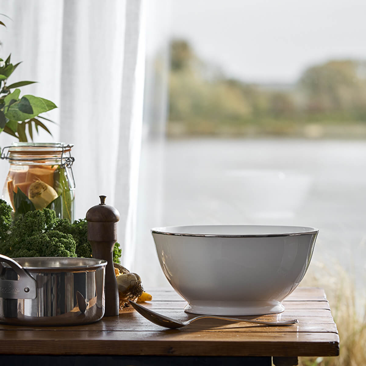 La collection GALON PLATINE décorée d’un filet en platine posée à la main allie élégance et sobriété, dans la plus pure tradition des porcelainiers de Limoges. La Haute Porcelaine de Limoges est une céramique d’exception dont le prestige et la renommée sont devenus universels. GALON PLATINE vient alors révéler la minutie du talent et du savoir-faire des artisans de la maison DEGRENNE. La collection trouvera facilement sa place sur toutes les tables, les rendant élégantes et classiques. Elle est une valeur sure pour dresser des tables harmonieuses et intemporelles.