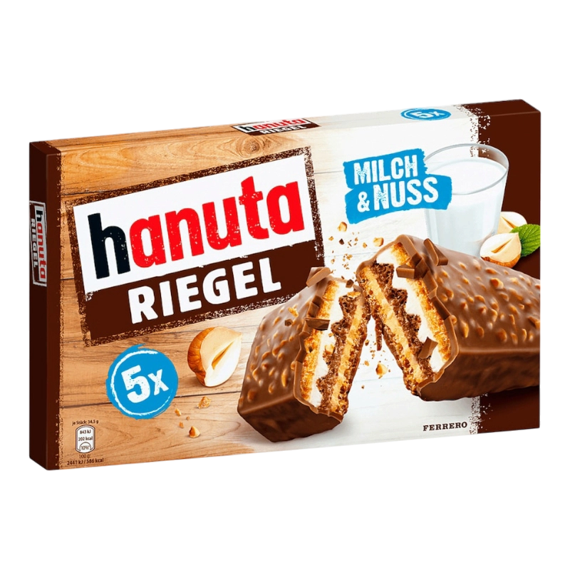 Hanuta Riegel, gaufrettes chocolat noisettes, barres chocolatées, snack gourmand, encas sucré, chocolat et noisettes