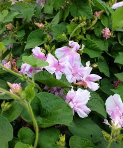 Cette variété rare d’Ipomée produit des fleurs doubles blanches et rose. Cette grimpante à la longue période de floraison est intéressante pour garnir un mur, un grillage, une pergolas.
