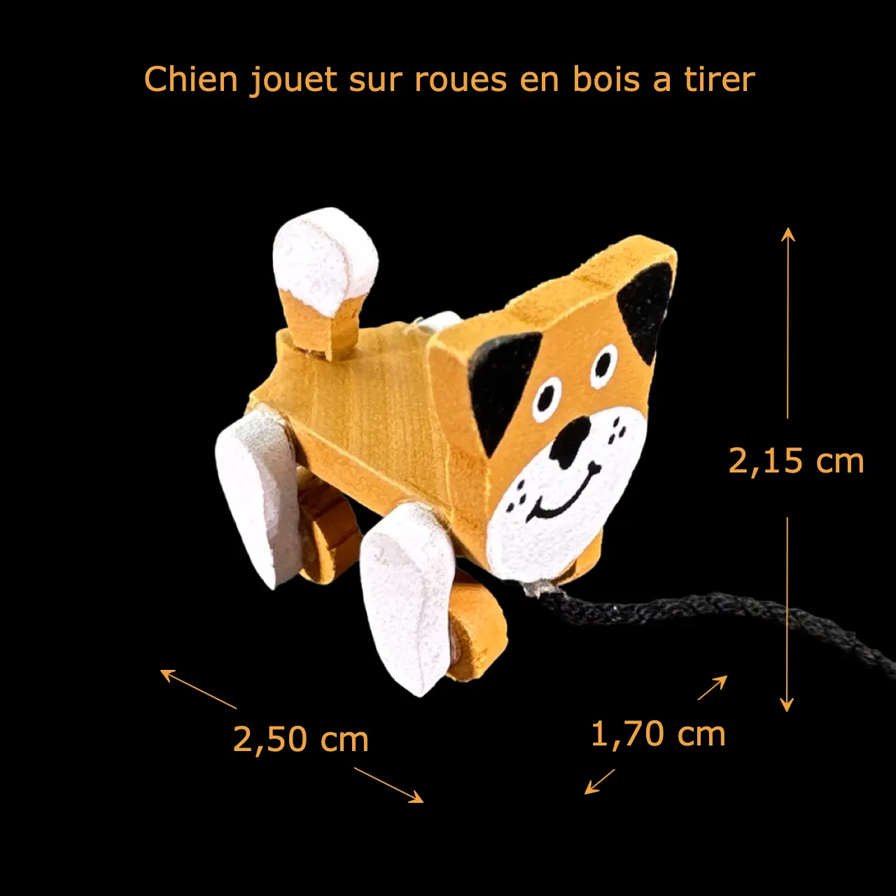 Chien jouet sur roues en bois à tirer – échelle 1/12ᵉ