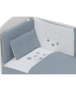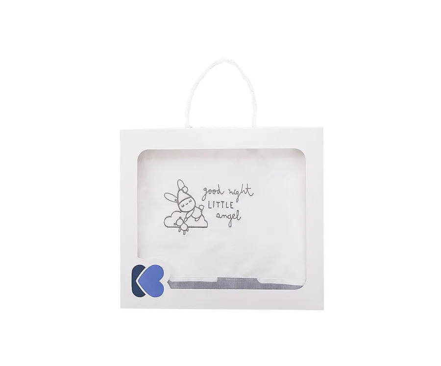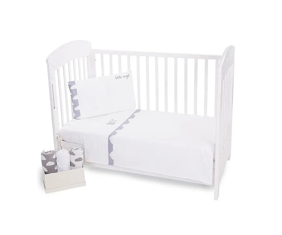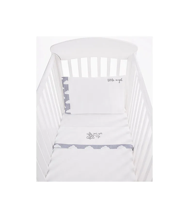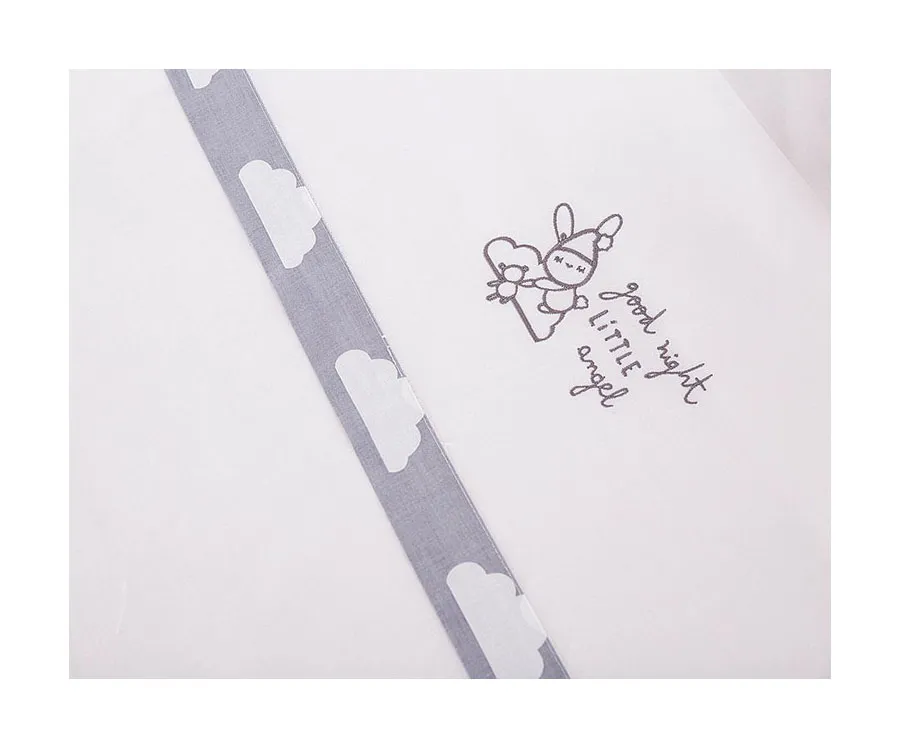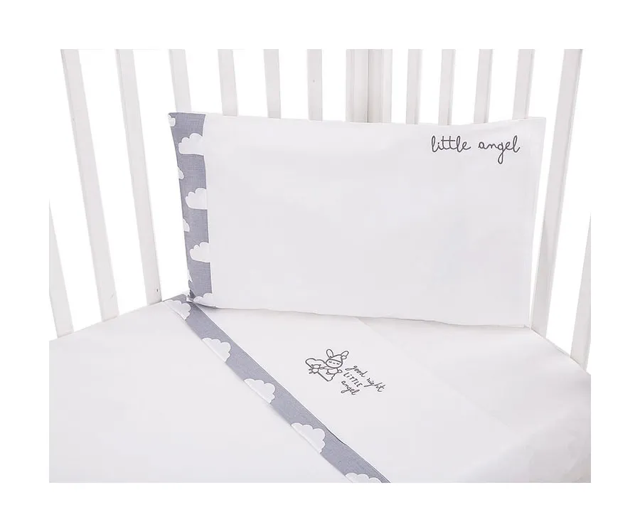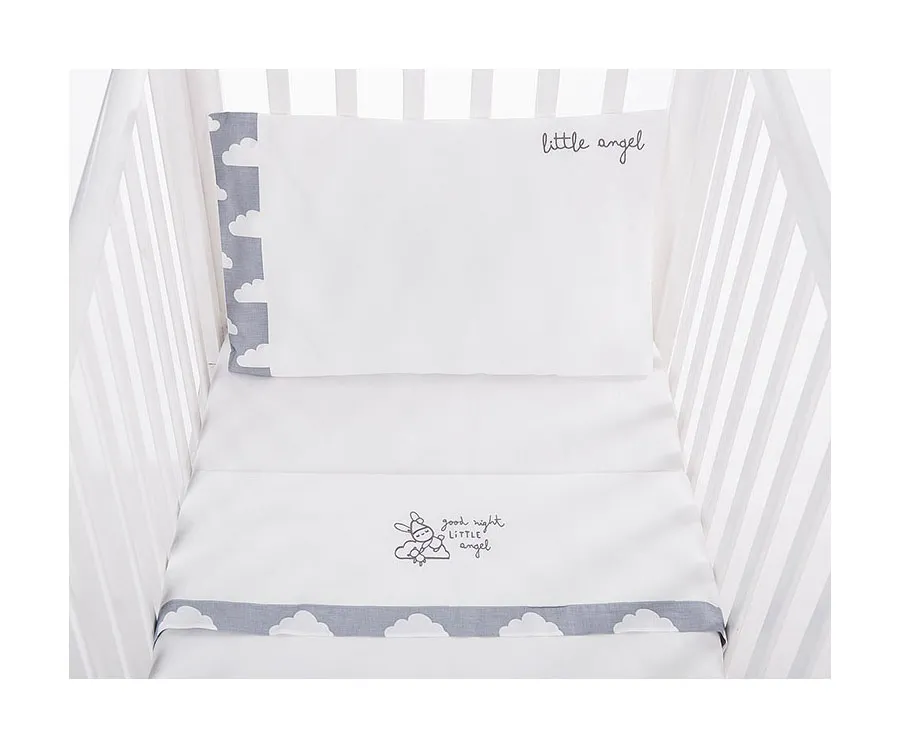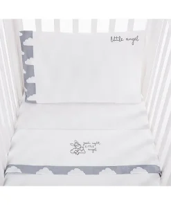 Ensemble de literie en broderie de créateur, la parure de lit 3 pcs 60/120 broderie Little Angel Clouds Kikkaboo, est fabriquée à partir de 100% coton ranforce de première qualité.
