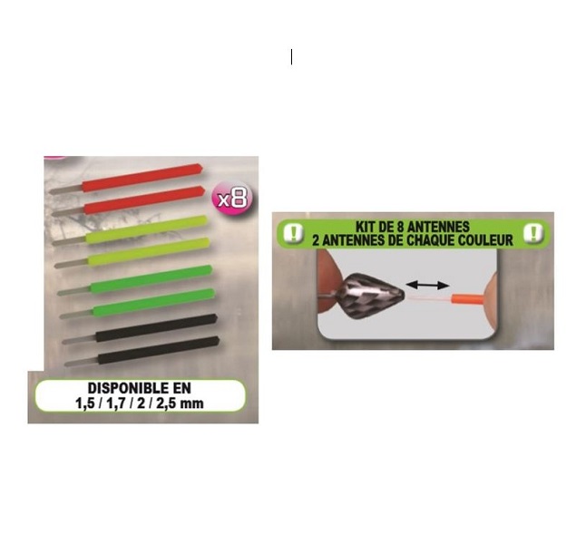 Le choix du diamètre de l’antenne doit se faire en fonction de la distance, de votre capacité visuelle et de la taille de l’appât utilisé.