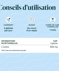 Formule à base de L-Lysine pure issue de la fermentation du maïs, en gélules de 500 mg. Complément idéal pour renforcer la masse musculaire et soutenir le système immunitaire.