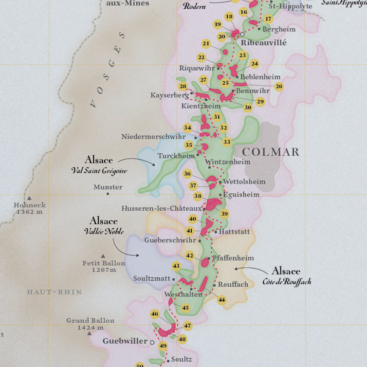 Allongée entre le Rhin et les contreforts des Vosges, l’Alsace est mondialement réputée pour sa production d’exceptionnels vins blancs.