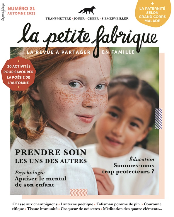 Pour accueillir sereinement la rentrée, à la Petite Fabrique, nous avons eu envie de prendre soin : de nous, de nos enfants, de la terre et des êtres qui la peuplent, de nos émotions et de nos désirs, de nos espoirs d’un nouvel horizon plus juste, plus humaniste. Tout comme les nuances de l’automne, poétique et doux, chatoyant et secret, les nuances du soin sont multiples. Care, attention, sollicitude… Au sein de la famille, ces termes évoquent instantanément la petite enfance et le soin du nouveau-né. Et après ?