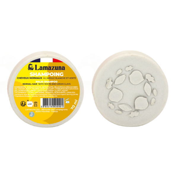 Les 5 ingrédients qui lavent et prennent soin de vos cheveux : L’huile de tournesol bio française (Helianthus annuus seed oil*) nourrit et protège les cheveux. Le tensioactif (sodium cocoyl isethionate) permet de nettoyer les cheveux sans agresser le cuir chevelu. Il est d’origine végétale mais son processus de fabrication fait intervenir une étape de synthèse chimique, il ne peut donc être labellisé bio. C’est notre choix pour éviter les tensioactifs sulfatés agressifs pour vos cheveux et l’environnement, ainsi que les tensioactifs déceptifs dans leurs pouvoirs nettoyants. Le tensioactif secondaire (coco-glucoside) permet de booster la mousse apportée par le sodium cocoyl isethionate. L’argile blanche (kaolin) est utilisée pour ses propriétés purifiantes et assainissantes, l’allié de votre cuir chevelu. L’argile bleue/verte (Montmorillonite, illite, kaolin) est riche en oligo-éléments et minéraux, elle est oxygénante et purifiante pour votre cuir chevelu.